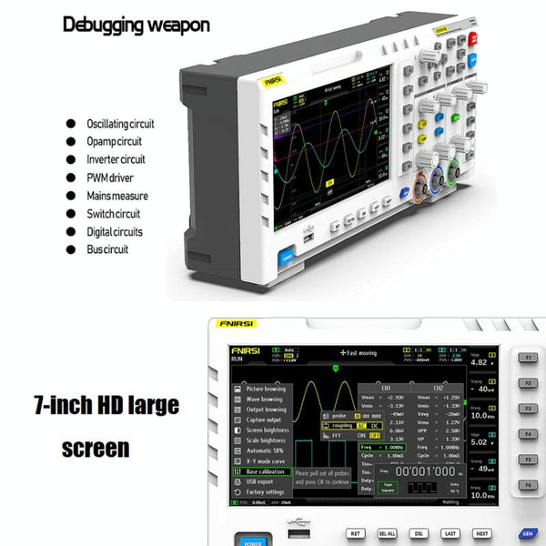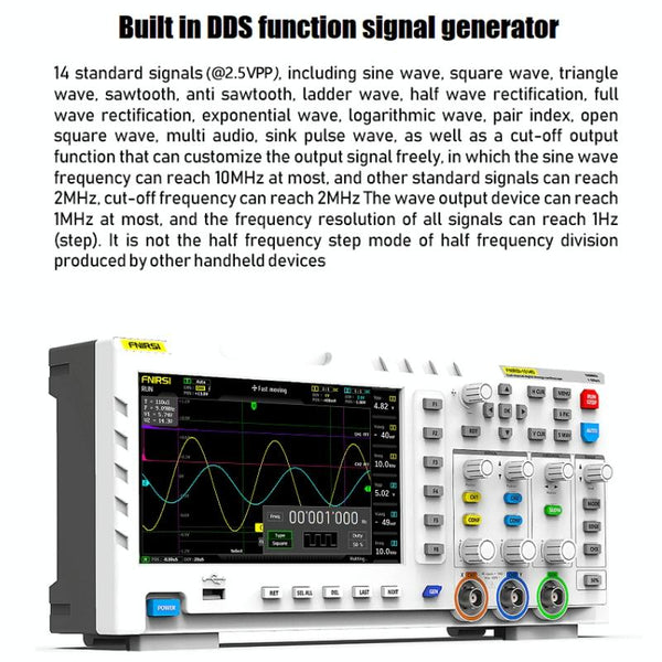 FNIRSI 2 In 1 Dual-Channel 100M Bandwidth Digital Oscilloscope 1GS Sampling Signal Generator, EU Plug 1014D +P4100 Probe