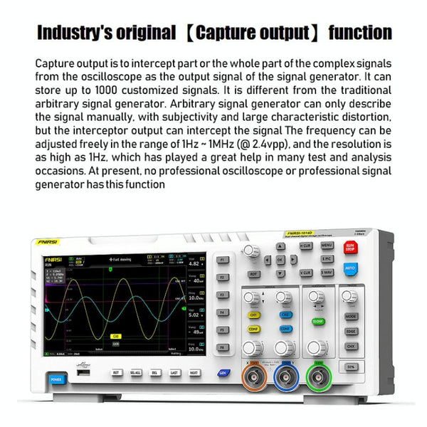 4. The complex signal measured by the oscilloscope is used as the output signal of the signal generator, which can store up to 1000 custom cut-off signals