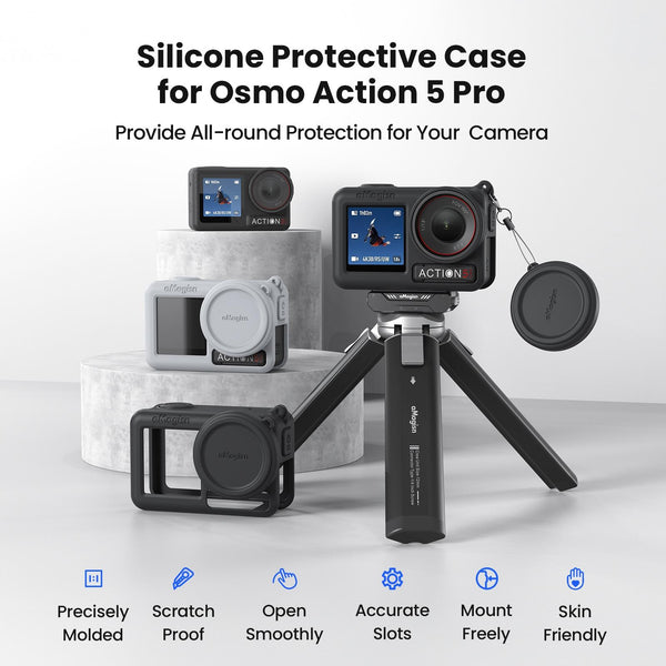 1. Silicone case specially designed for DJI Osmo Action 5 Pro, including body case + lens cover, all-round protection for the device, no fear of scratches and bumps