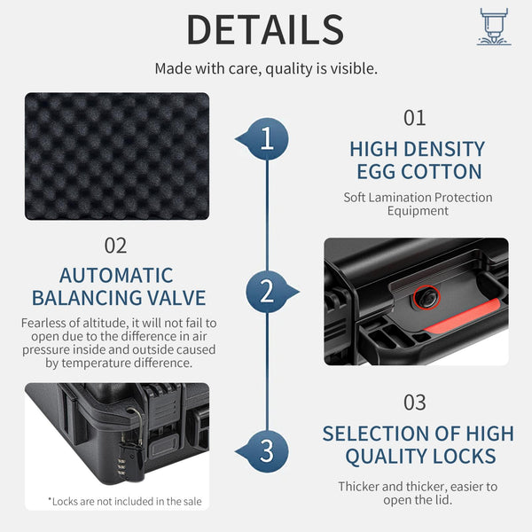 3. Strong sealing. The outer box has a valve design to ensure the internal space intact, with IP67 rating, waterproof and dustproof, to ensure that your product is dry and clean;