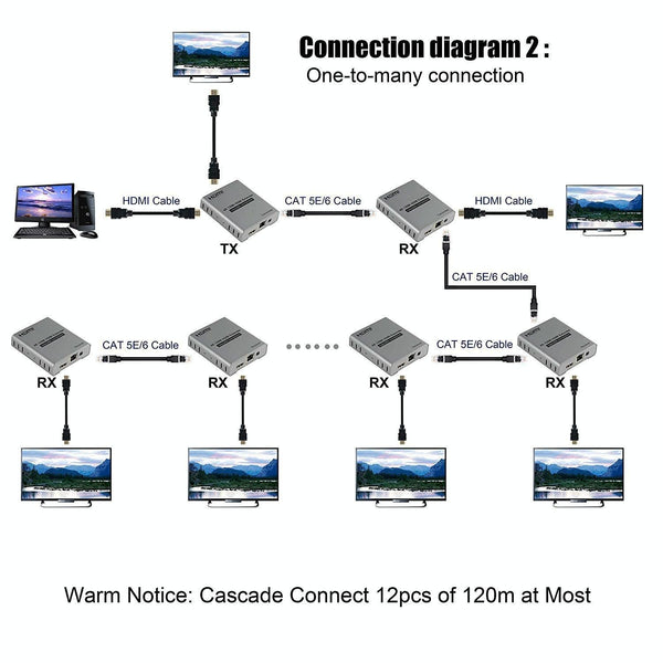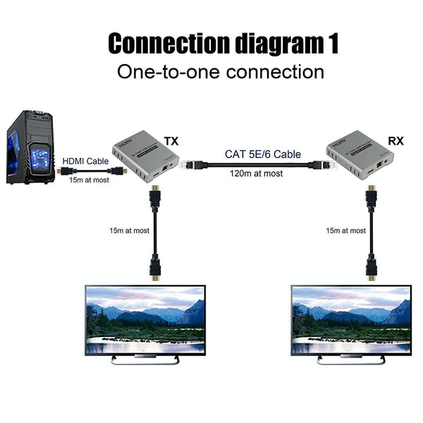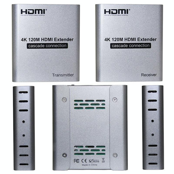 HDMI Single Cable 120m Transmitter / Receiver Extender 4K HD Transmitter UK Plug(Gray)