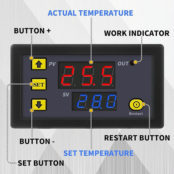 High-precision Microcomputer Intelligent Digital Display Switch Thermostat, Style:12V Power Supply(Red and Blue Display)