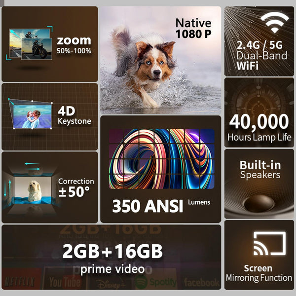 Home HD Projector 1080P Bluetooth WIFI Mobile Phone Smart Projector, Specification: UK Plug(2+16G)