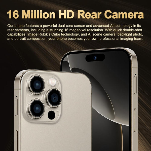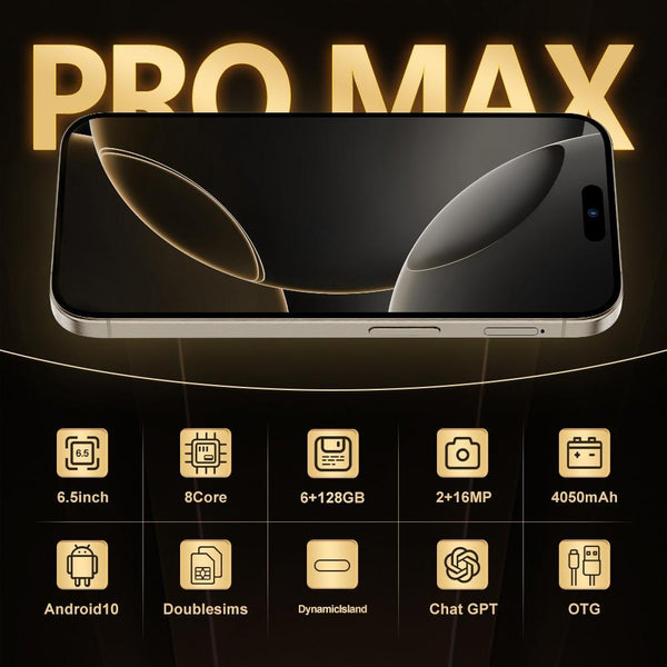 i16 Pro Max / Q5A, 6GB+128GB, 6.5 inch Screen, Face Identification, Android 10 MTK6762 Octa Core, OTG, NFC, Network: 4G, Dual SIM, US Plug (Gold)