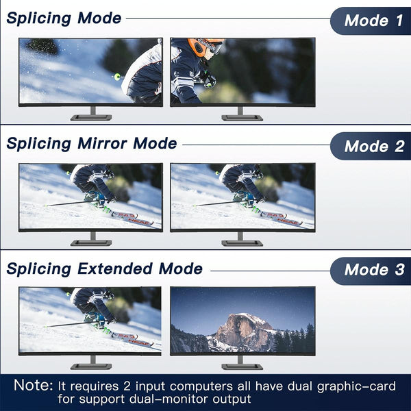 2. Ultra HD: Supports resolutions up to 4K 60Hz, 2K 120Hz, supports input terminals to connect 2 computers with different resolutions, for example, one is 4K 60Hz, the other is 4K 30Hz, 1440P 60Hz, 3D, 1080P 60Hz or more low resolution.