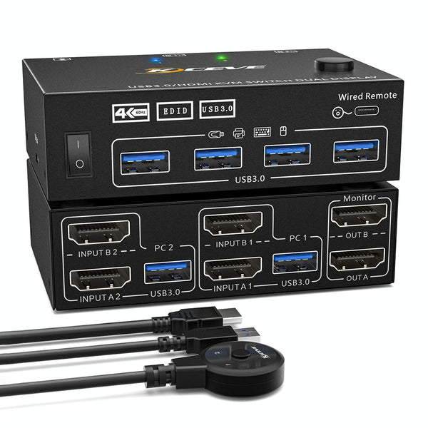KC-KVM202AS 4K 60HZ USB3.0 HDMI Dual Display KVM Switcher Support EDID Analog Lock Screen