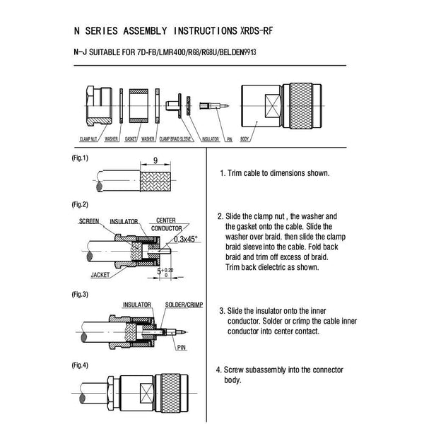 N Male Coax Adapter For LMR400 / RG8 / Belden 9913 / KMR400 RF Coaxial Cable