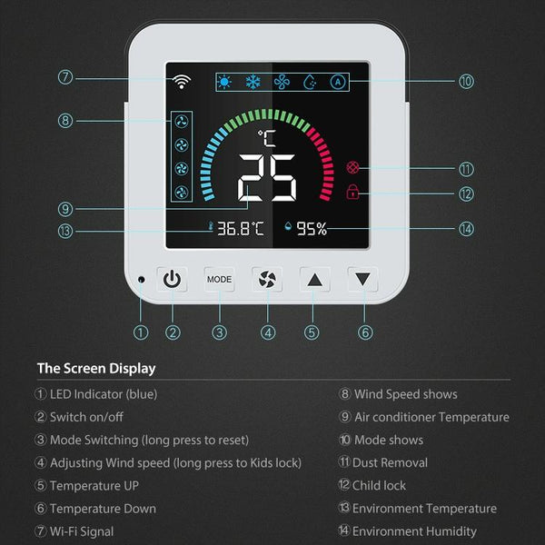 NEO NAS-RT01W WiFi Smart Color Screen Infrared Air Conditioner Controller Thermostat(White)