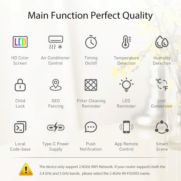 3. Functions: local offline control, child lock, APP remote control, set scheduled tasks, filter cleaning tips, address fence, voice control, etc.
