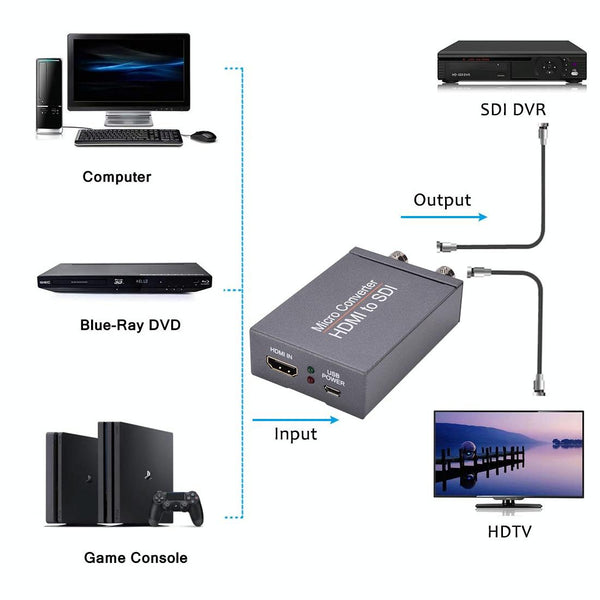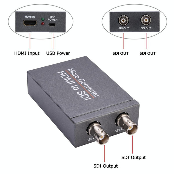 4. Convert HDMI signals to SDI: 480i/576i to SD-SDI (SMPTE 259M-C, bit rate 270Mbit/s) 720p/1080i to HD-SDI (SMPTE 292M, bit rate 1.485Gbit/s or 1.485/ 1.001Gbit/s)