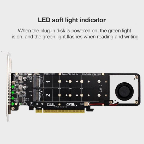 PCI-E X16 to M.2 M-key NVME X4 SSD RAID Array Expansion Adapter Support 2242/2260/2280/22110(PH44Plus)