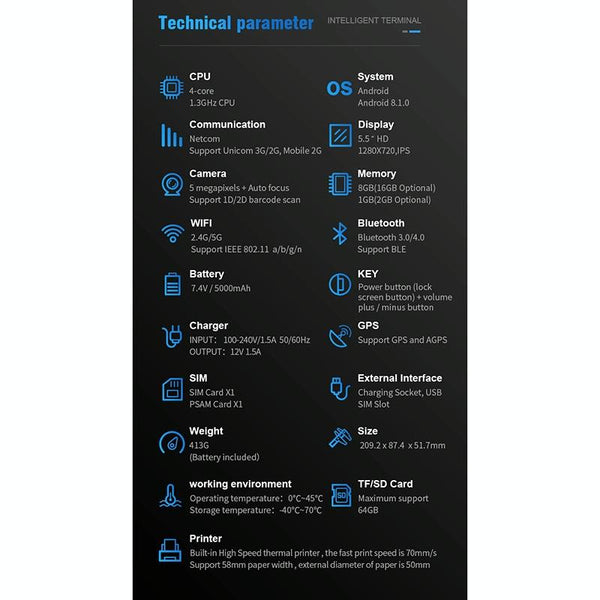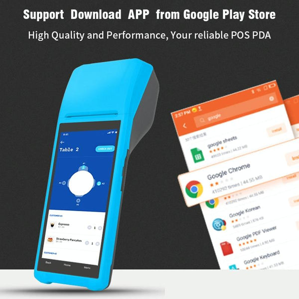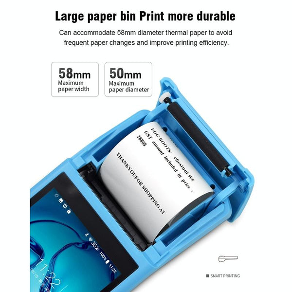 POS-6100 5.5 inch Handheld Android Smart Scan Code Cash Register Thermal Printing Machine PDA Terminal, EU Plug