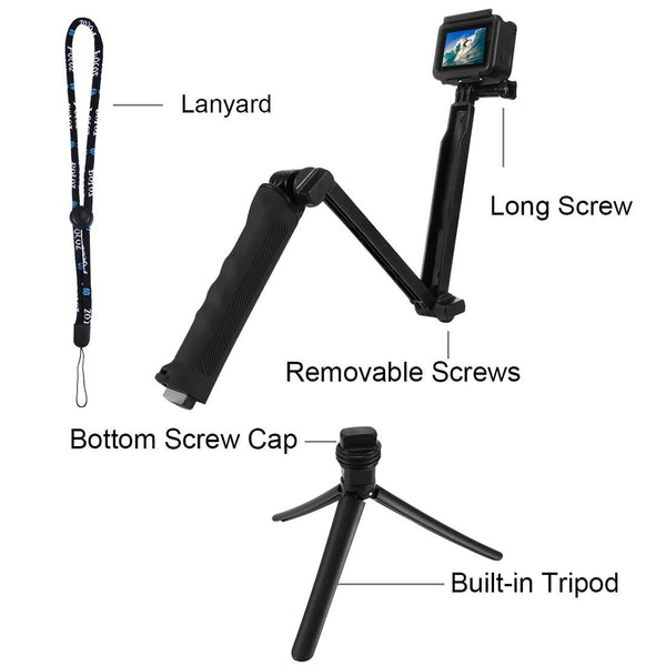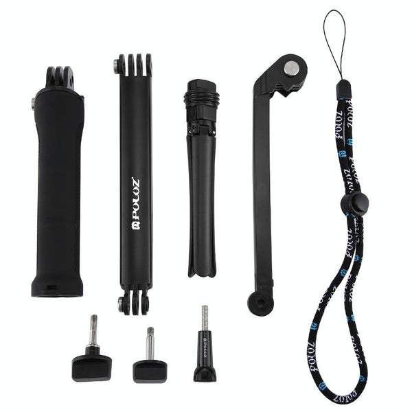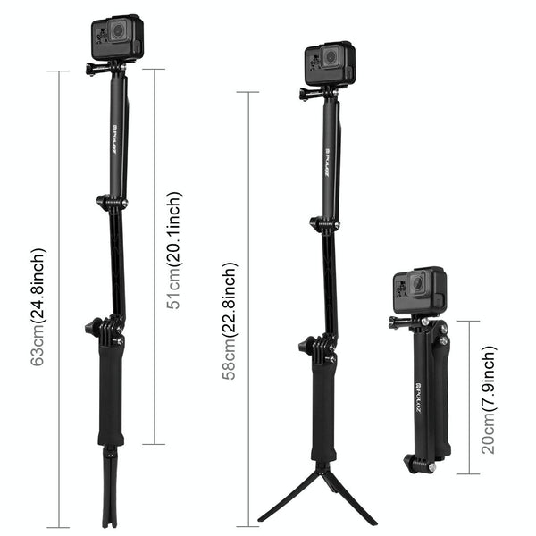 PULUZ 3-Way Grip Foldable Tripod Selfie-stick Extension Monopod for GoPro, Insta360 ONE R, DJI Osmo Action and Other Action Cameras, Length: 20-58cm
