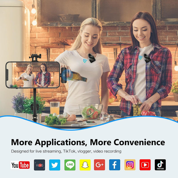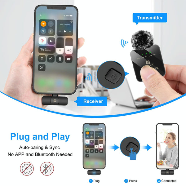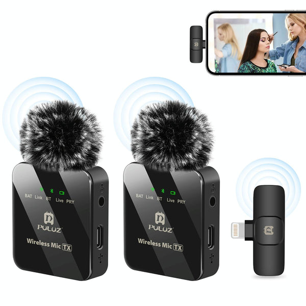PULUZ Wireless Lavalier Microphone for iPhone / iPad, 8-Pin Receiver and Dual Microphones (Black)