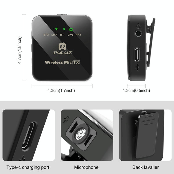 1. Wireless pickup microphone 2.4G: wireless connection, can provide up to 48K high-fidelity recording