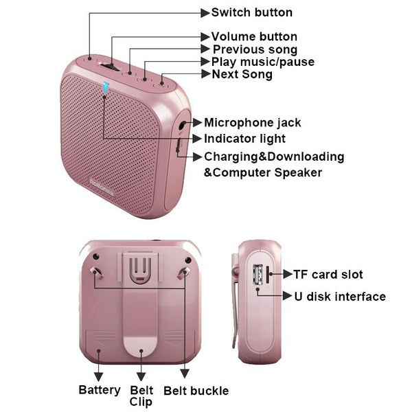 Rolton K400 Mini Audio Speaker Megaphone Voice AmplifierSupport FM Radio TF MP3(Black)
