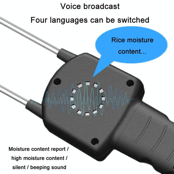 6. Voice broadcast, four languages can be switched, moisture content report number / high moisture content / silent / beep sound