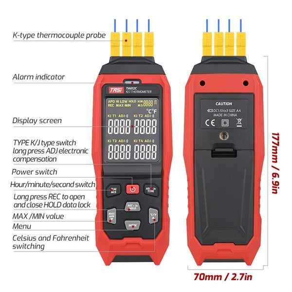 TASI Contact Temperature Meter K-Type Thermocouple Probe Thermometer, Style: TA612C 4 Channels