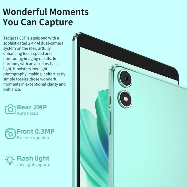 2. Mint Green Metal Body: Experience the P85T tablet with a serene mint green shade, accentuated by a metal sandblasting finish. It also boasts a 6mm bezel screen, yet tips the scale at a mere 225g, portable and fashionable.