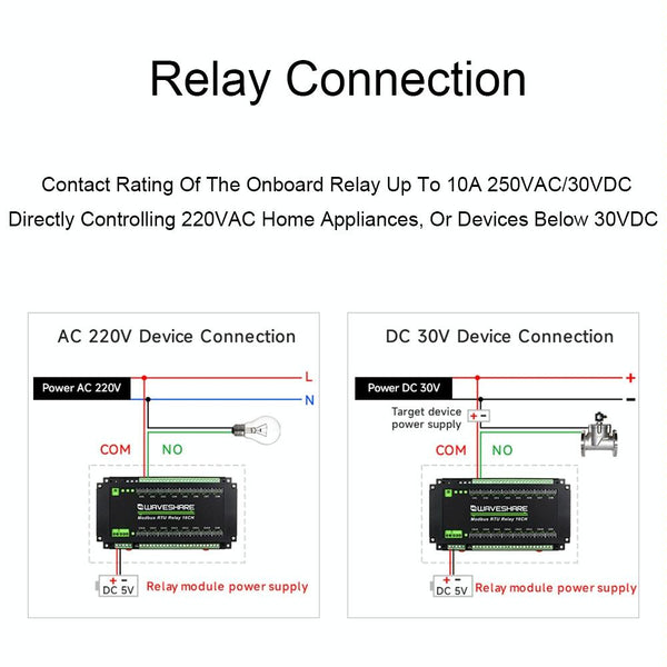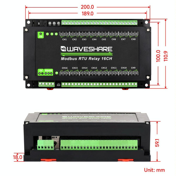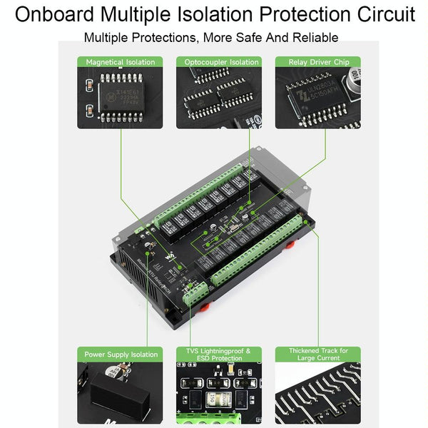 Waveshare 24921 Modbus RTU 16-Ch Relay Module, RS485 Interface, With Multiple Isolation Protection Circuits