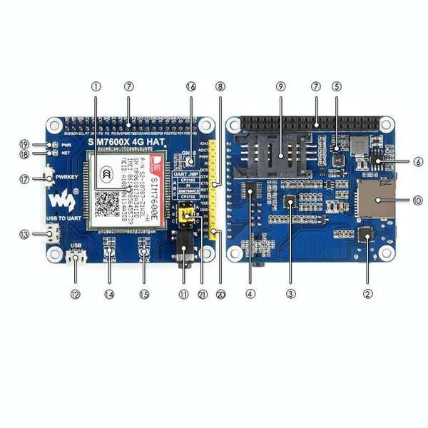 4G/3G/GNSS HAT for Raspberry Pi, Based on SIM7600E-H