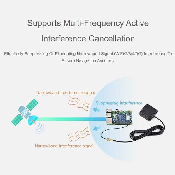 9. Supports multi-frequency active interference cancellation, effectively suppressing or eliminating narrowband signal (WiFi/2/3/4/5G) interference to ensure navigation accuracy