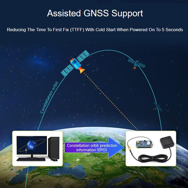 10. A-GNSS (Assisted GNSS) support, reducing the cold start time to first fix (TTFF) at power-on to 5 seconds