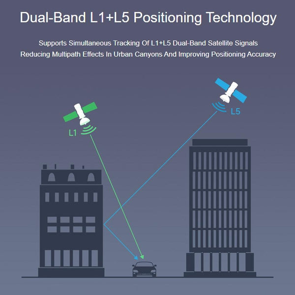 6. Supports simultaneous tracking of L1+L5 dual-frequency satellite signals, reducing the multipath effect in urban canyons and improving positioning accuracy.