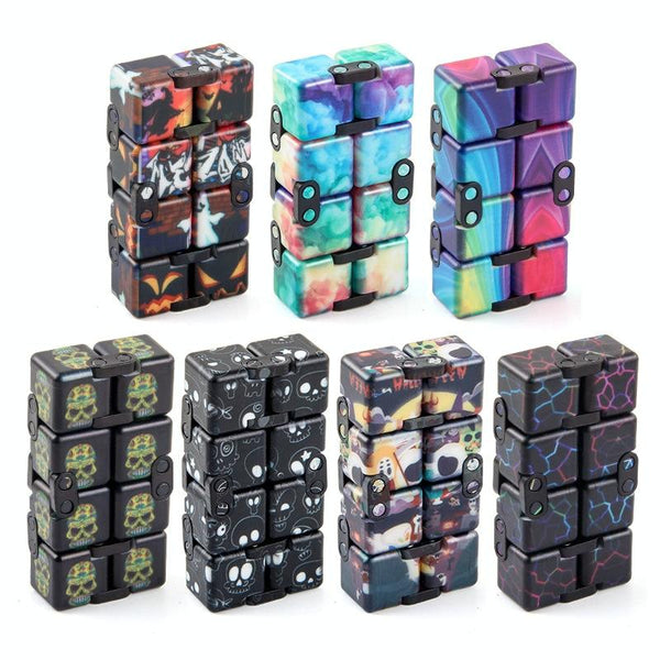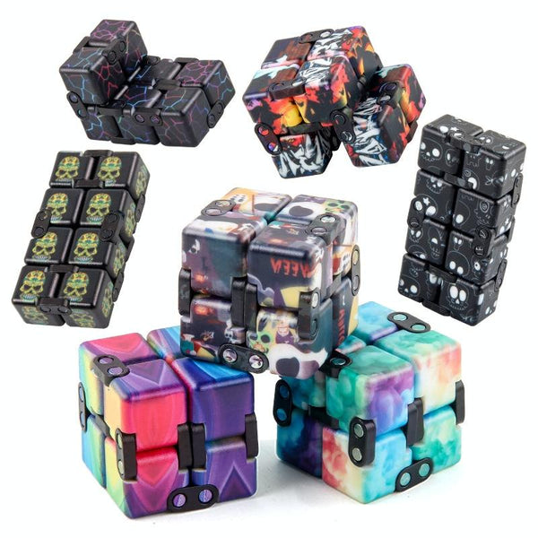 3 PCS Unlimited Magics Cube Colorful UV Printing Pocket Magic Cube Variety Folding Fingertip Magic Cube Decompression Toy(NO.168-8-36 Color Flower Pattern)