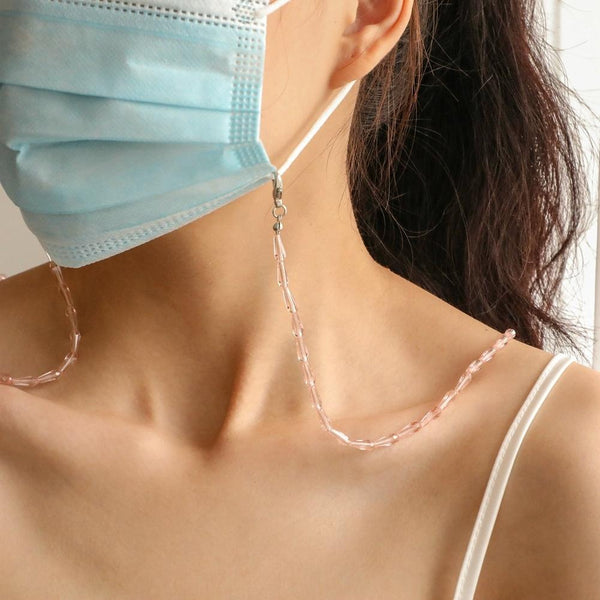 Drop Style Faceted Crystal Mask Lanyard Necklace Chain Glasses Chain(Transparent Pink)