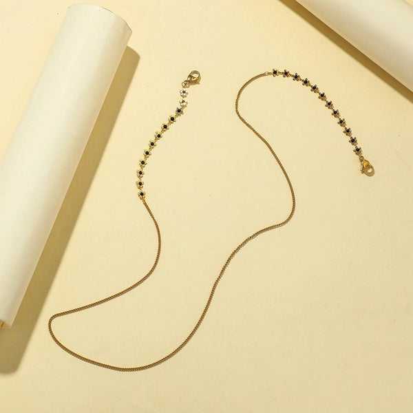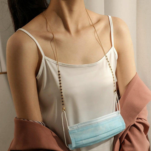 Flower Gold-Plated Stainless Steel Hanging Neck Chain Anti-Lost Mask Lanyard(Gold Black Flower)