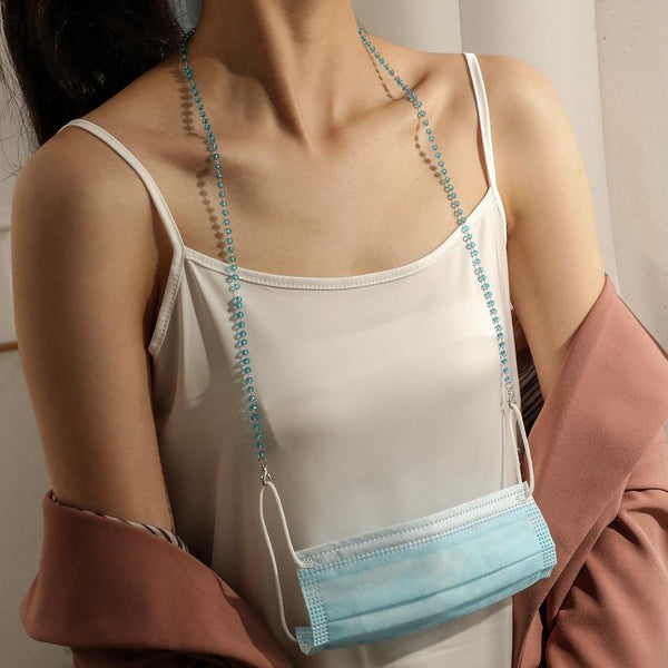 Glossy Crystal Beads Handmade Mask Anti-Lost Hanging Lanyard Chain Glasses Chain(Transparent Sky Blue)