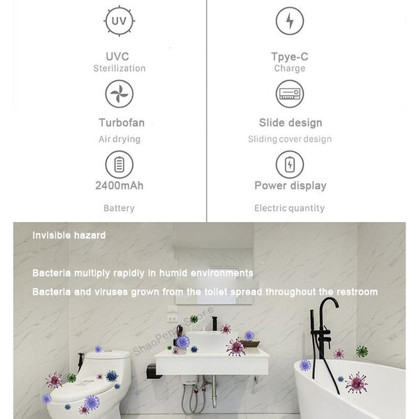 4. Function: UVC ultraviolet sterilization, automatic air drying bacteriostasis, power display, temperature display
