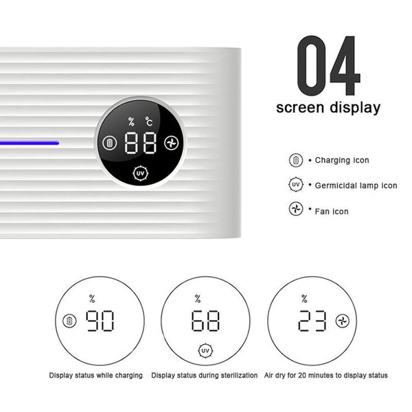4. Function: UVC ultraviolet sterilization, automatic air drying bacteriostasis, power display, temperature display