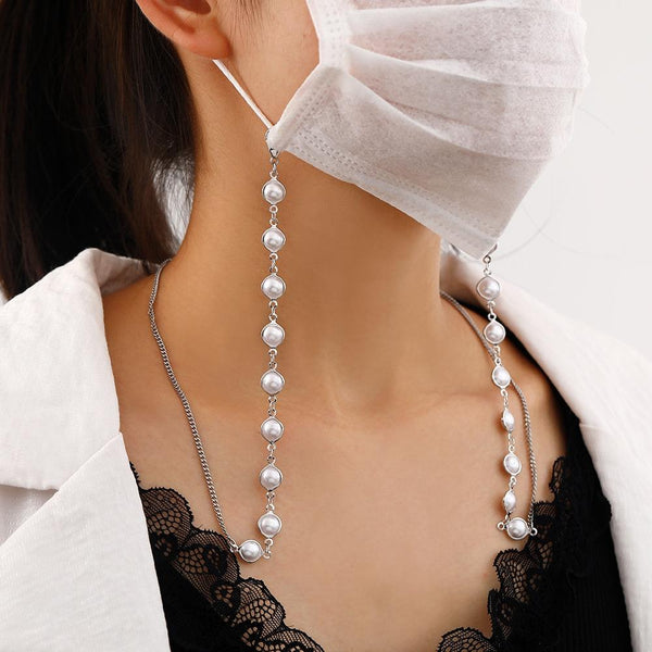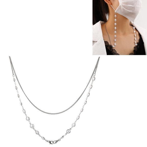Mask Anti-Lost Hanging Chain Round Handmade Pearl Multi-Purpose Sweater Chain Glasses Chain(Silver)