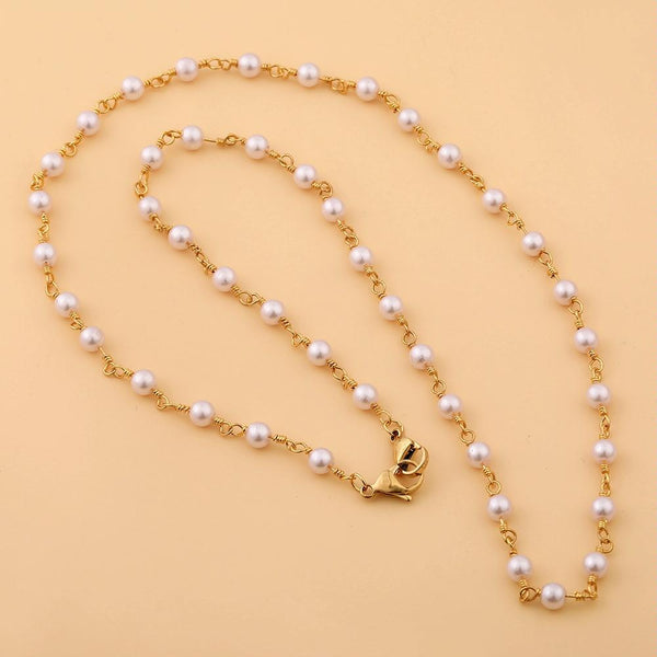 Mask Anti-Lost Lanyard Pearl Sweater Chain Multi-Purpose Mask Lanyard Glasses Chain(Gold)