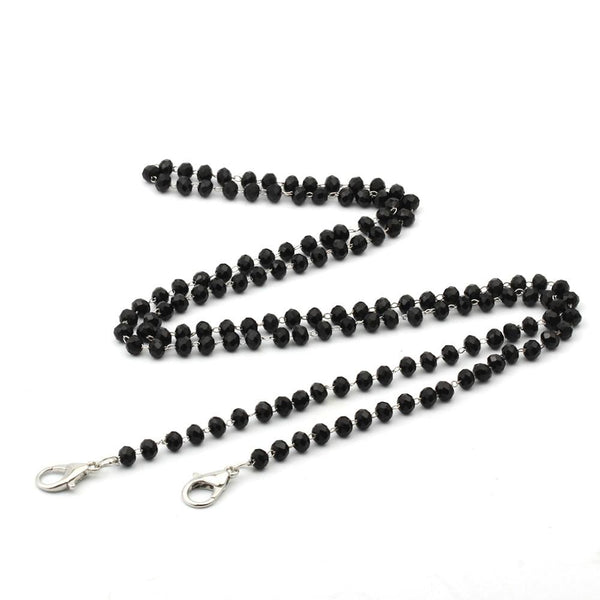Mask Lanyard Handmade Crystal Bead Chain Anti-Drop Hanging Glasses Chain, Color:Black