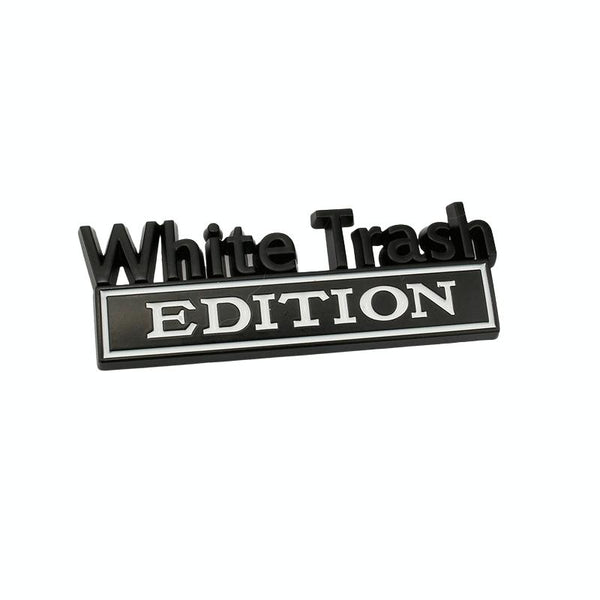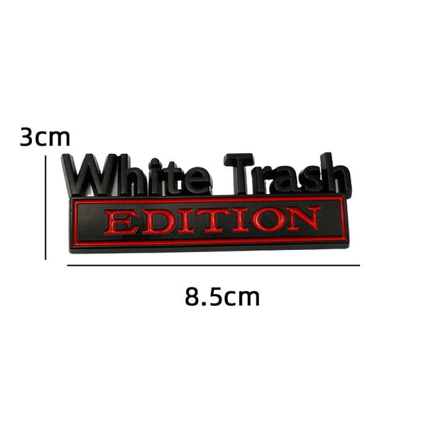 2 PCS Car Metal Modification Standard White Trash Edition Car Label Stickers(Black White)