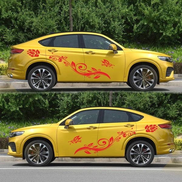 2 PCS/Set D-251 Butterfly Love Flowers Pattern Car Modified Decorative Sticker(Red)