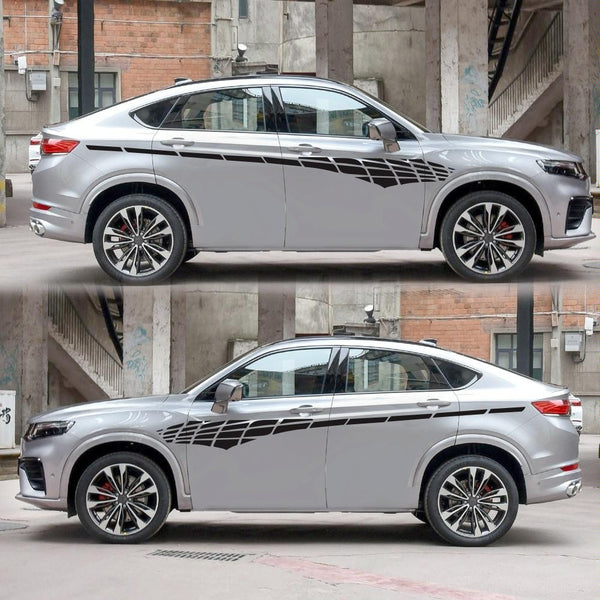 2 PCS/Set D-501 Plaid Pattern Car Modified Decorative Sticker(Black)