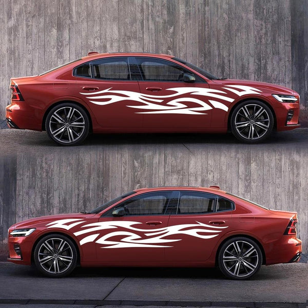 2 PCS/Set D-521 Fire Totem Pattern Car Modified Decorative Sticker(White)