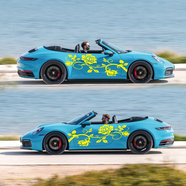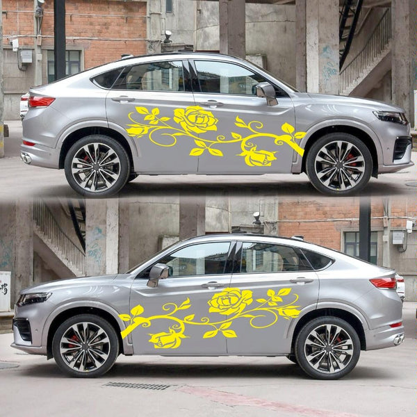 2 PCS/Set D-545 Rose Pattern Car Modified Decorative Sticker(Yellow)
