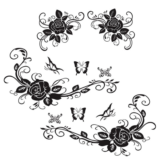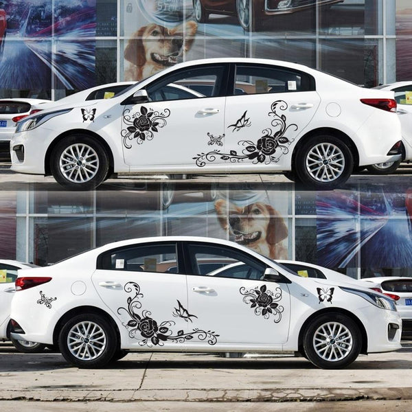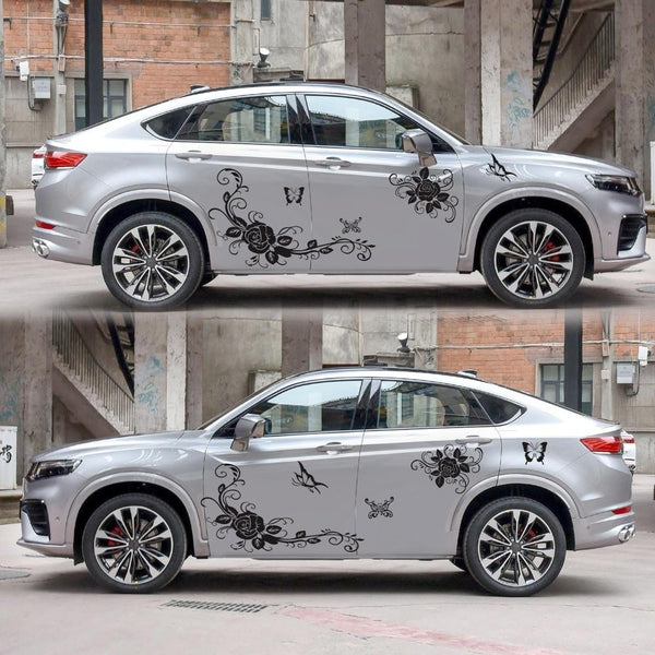 2 PCS/Set D-72 Butterfly Love Flower Pattern Car Modified Decorative Sticker(Black)