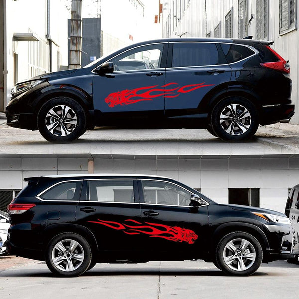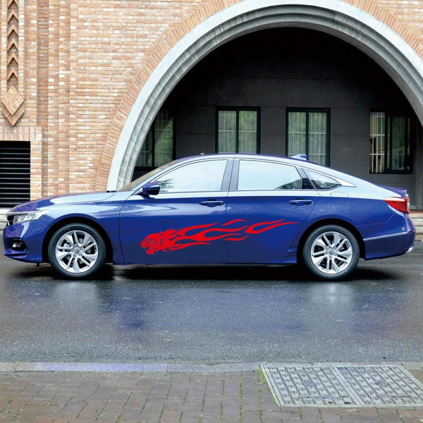2 PCS/Set D-815 Flame Lion Pattern Car Modified Decorative Sticker(Red)
