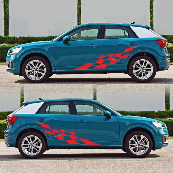 2 PCS/Set D-943 Checkered Flag Pattern Car Modified Decorative Sticker(Red)