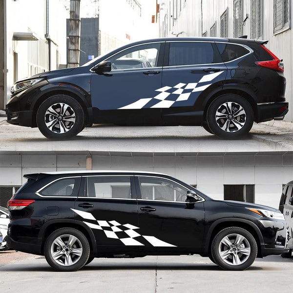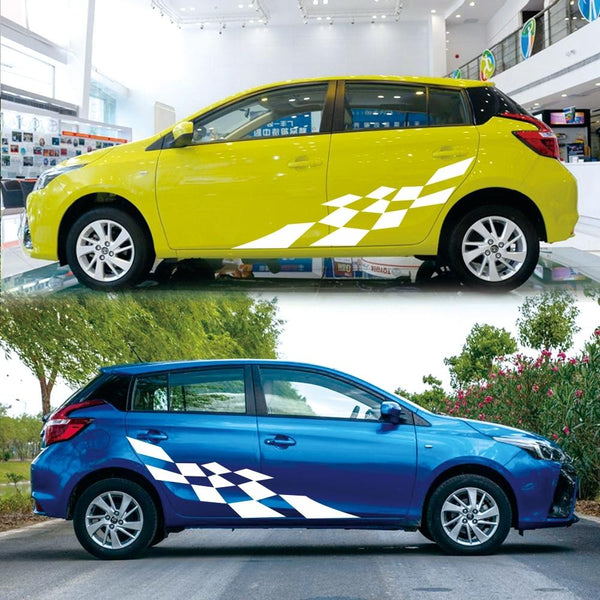 2 PCS/Set D-943 Checkered Flag Pattern Car Modified Decorative Sticker(White)