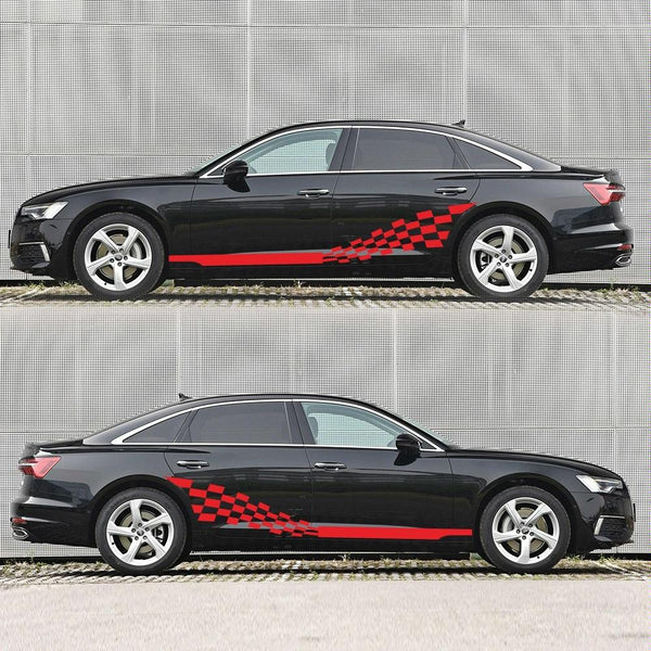 2 PCS/Set D-944 Striped Plaid Pattern Car Modified Decorative Sticker(Red)