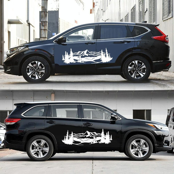 2 PCS/Set D-957 Mountains Pattern Car Modified Decorative Sticker(White)