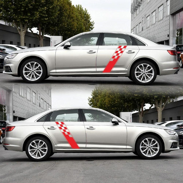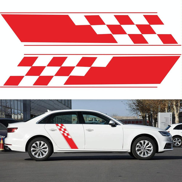 2 PCS/Set D-962 Checkered Flag Pattern Car Modified Decorative Sticker(Red)