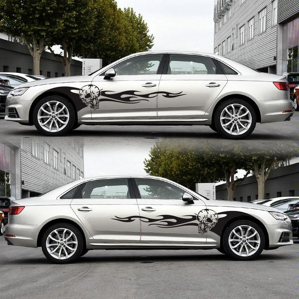 2 PCS/Set D-964 Skull Flame Pattern Car Modified Decorative Sticker(Black)